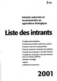 Liste Intrants autorisés et recommandés en agriculture biologique Liste des intrants Produits phytosanitaires Engrais et substrats du commerce Produits contre les mouches des étables Produits…