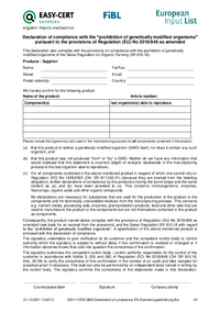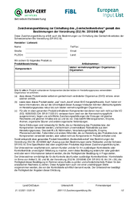 Zusicherungserklärung zur Einhaltung des „Gentechnikverbotes“ gemäß den Bestimmungen der Verordnung (EU) Nr. 2018/848 idgF Diese Zusicherungserklärung erfüllt auch die Bestimmungen zur Einhaltung des