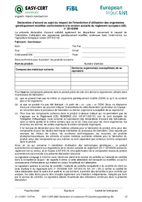 Déclaration d'accord au sujet du respect de l'interdiction d'utilisation des organismes génétiquement modifiés conformément à la version actuelle du règlement européen (UE) n° 2018/848 La présente déc