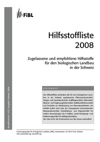 Hilfsstoffliste 2008 Bestellnummer 1032, Ausgabe Schweiz, 2008 Zugelassene und empfohlene Hilfsstoffe für den biologischen Landbau in der Schweiz STECKBRIEF Die Hilfsstoffliste beinhaltet alle für