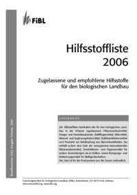 Hilfsstoffliste 2006 Bestellnummer 1032, Ausgabe Schweiz, 2006 Zugelassene und empfohlene Hilfsstoffe für den biologischen Landbau STECKBRIEF Die Hilfsstoffliste beinhaltet alle für den biologische