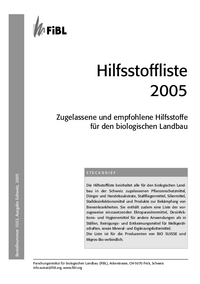 Hilfsstoffliste 2005 Bestellnummer 1032, Ausgabe Schweiz, 2005 Zugelassene und empfohlene Hilfsstoffe für den biologischen Landbau STECKBRIEF Die Hilfsstoffliste beinhaltet alle für den biologisch